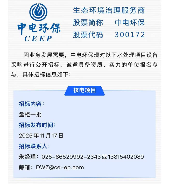 中電環(huán)保股份有限公司是南京市首家環(huán)保上市公司(股票簡稱:中電環(huán)保,股票代碼:300172),南京環(huán)保產(chǎn)業(yè)協(xié)會會長單位,國家級聯(lián)盟理事長單位,是生態(tài)環(huán)境治理服務(wù)商,主營(3+1):水務(wù)、固危廢、煙氣治理及產(chǎn)業(yè)創(chuàng)新平臺,包括:工業(yè)水處理、污水處理及水環(huán)境綜合治理;固危廢土壤、污泥餐廚垃圾處理;煙氣及VOCS治理;智慧環(huán)保;高端裝備等。