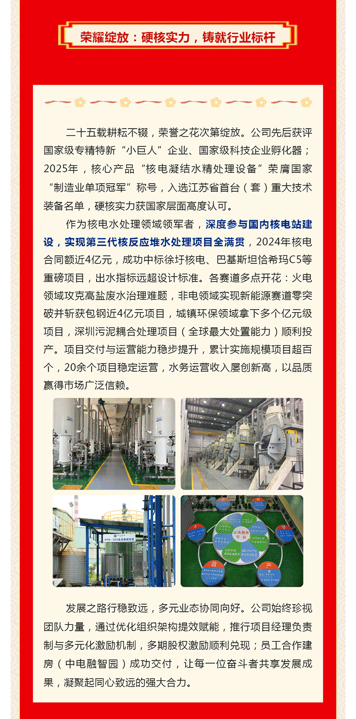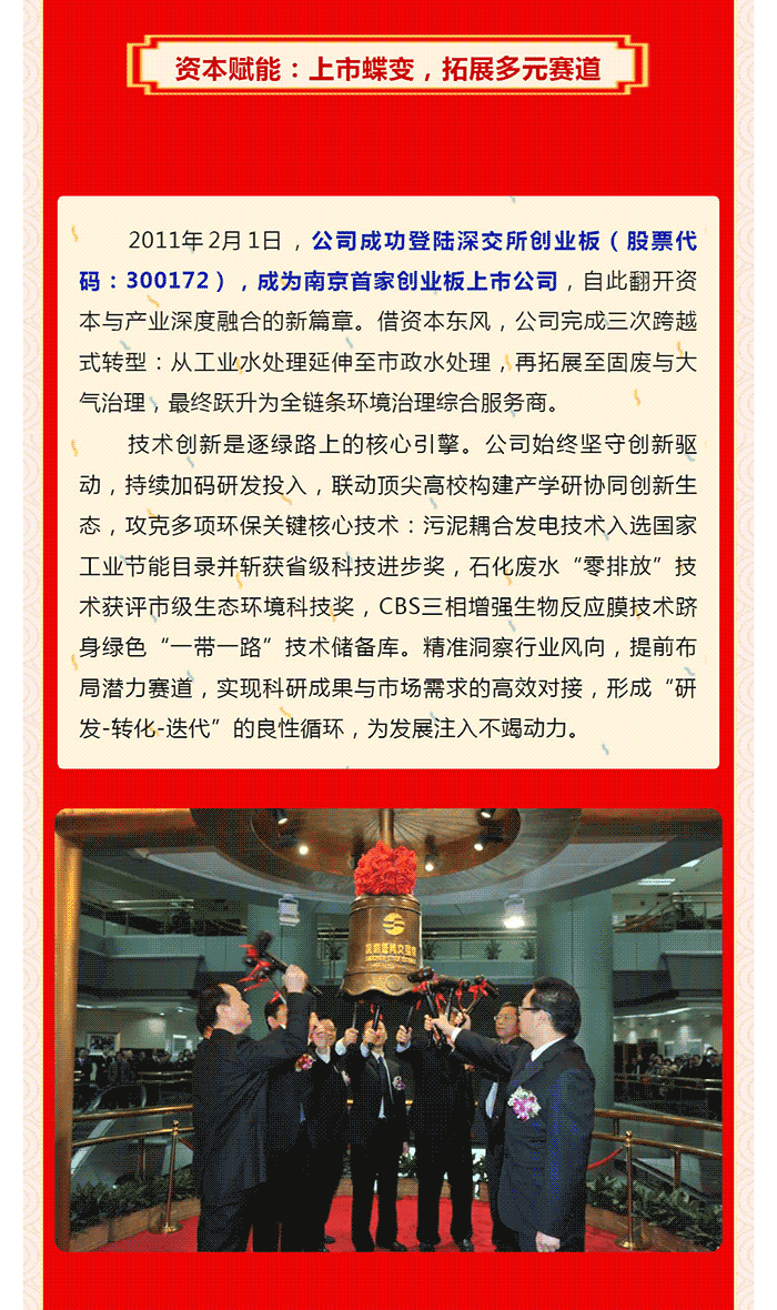 中電環(huán)保股份有限公司是南京市首家環(huán)保上市公司(股票簡(jiǎn)稱:中電環(huán)保,股票代碼:300172),南京環(huán)保產(chǎn)業(yè)協(xié)會(huì)會(huì)長(zhǎng)單位,國(guó)家級(jí)聯(lián)盟理事長(zhǎng)單位,是生態(tài)環(huán)境治理服務(wù)商,主營(yíng)(3+1):水務(wù)、固危廢、煙氣治理及產(chǎn)業(yè)創(chuàng)新平臺(tái),包括:工業(yè)水處理、污水處理及水環(huán)境綜合治理;固危廢土壤、污泥餐廚垃圾處理;煙氣及VOCS治理;智慧環(huán)保;高端裝備等。